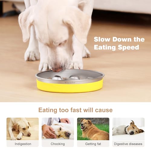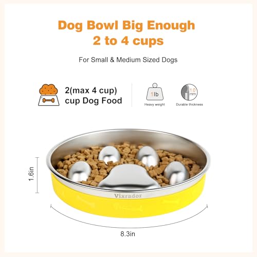 Slow Feeder Design:Vixrador slow feeder dog bowls with slow feeder design can slow down the eating speed and solve the problems of suffocation and help digestion,prevent excessive obesity caused by dogs eating too much too fast.The yellow new version offer higher and larger area of slow feeder design to keep better slow feeder effect.