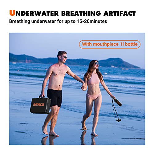 🏊【LARGER CAPACITY BUT PORTABLE】: SMACO diving tank has a capacity of 1L, and can be used for 340 underwater breaths at full capacity. It can be used for 15-20 minutes of diving time.We use an aluminum hard case, and diving bottles, adapters, and a cloth bag can all be placed in the aluminum hard case. Better for everyone to carry.