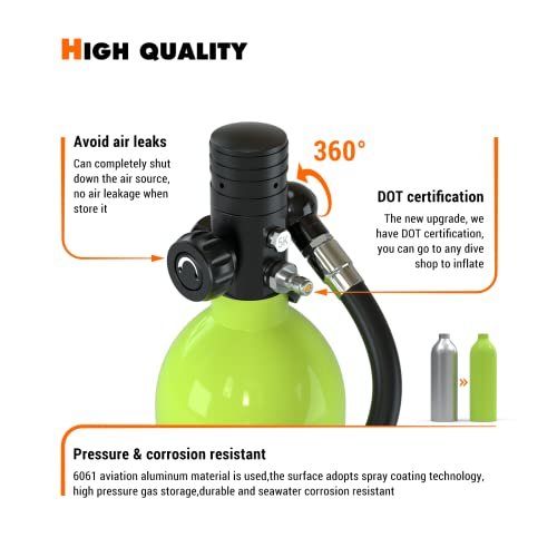 NEWEST UPGRADED:The connection between the medium pressure air hose and the breathing head of the S400 Plus diving tank can be rotated 360°, adapting to any posture underwater.You can easily carry it and free your hands to do more things underwater