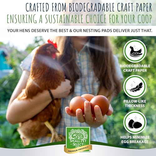 Elevate your poultry’s comfort and hygiene with Small Pet Choose’s Chicken Nesting Pads (12-Pack). Crafted from high-quality, USA-sourced biodegradable craft paper, these compostable and disposable nest liners are a best choice for any chicken coop. Designed to suit most nesting boxes, these 13×13-inch pads provide superior cushioning on your hens, ensuring a clean and cozy spot for egg-laying. Say good-bye to messy straw and hello to hassle-free maintenance. Our nesting pads are a quality solution for poultry enthusiasts and industrial farms alike, keeping nests clean and eggs pristine. Make a selection Small Pet Choose for premium nesting materials that make a difference. Spend money on these chicken coop accessories to simplify your coop maintenance and give you the best on your hens. Upgrade your coop’s comfort and cleanliness with Small Pet Choose’s Chicken Nesting Pads – where quality meets convenience, and your hens’ well-being comes first.