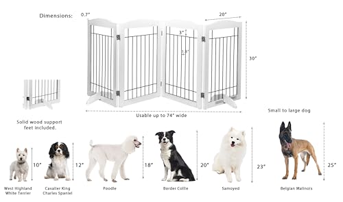 EASY TO SET UP & STORE: The Dog Gate Quickly Unfolds Like an Accordion, Making It Simple to Set Up and Store. Consists of 4 pet panels, connected and secured together with sturdy 360 degree hinges for multiple configurations.