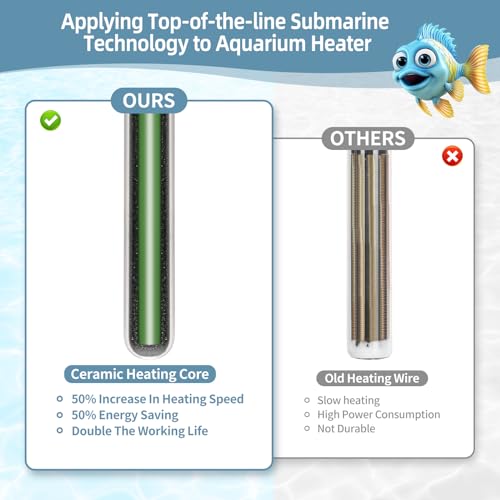 🐠【Explosion-proof Ceramic Aquarium Heater】The heating element of the 50W Aquarium Heater is composed of the explosion-proof quartz glass tubes and high-temperature resistant ceramic heating core, the usage of the up to date submarine technology for fast, consistent, and more flippantly distributed heat. Housed in of V0 grade ABS flame retardant plastic for IP68 waterproof, corrosion resistant, and high-temperature resistance makes the fish tank heater stronger.