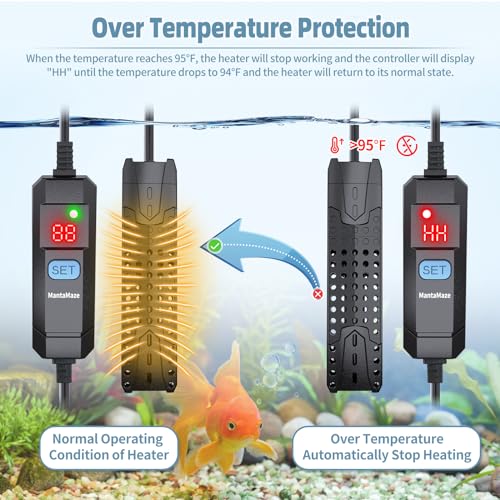 🐙【Precise Temperature Keep an eye on System】M2 grade precision water sensor forms an accurate water temperature sensing system. Automatic Constant Temperature Function: Temperature accuracy is ±1°F, when water temperature is higher than the set temperature, the adjustable aquarium heater will robotically stop heating; when water temperature is less than the set temperature, the adjustable fish tank heater will restart heating.