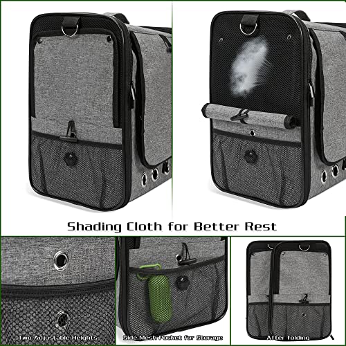 【LARGE WINDOWS & BREATHABLE MESH】 Roll up the sunshade of the bird go back and forth cage and fix it. You’ll be able to check the status of your pet at any time through the transparent window. The side of the bag is equipped with anti scratch ventilation net to make sure sufficient air circulation and wide vision in the bag.
