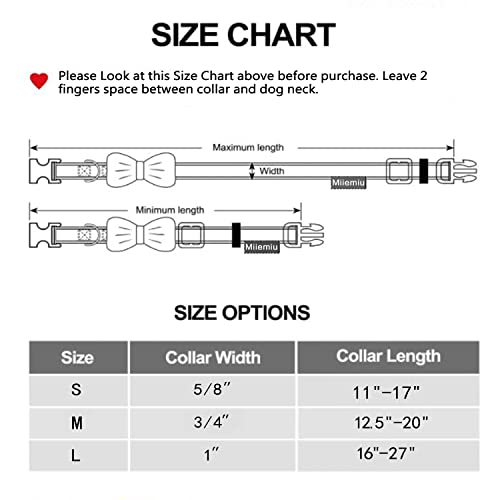 【Adjustable size】 The size of the Dog Collars is neck 16″-27″, width 5/8″. Bow Tie Size: 4.52″ x 2.48″ (w x h). Please measure your dog’s neck to get correct size.
