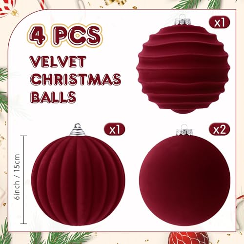 Syhood 4 Pcs 6 Inch Red Velvet Christmas