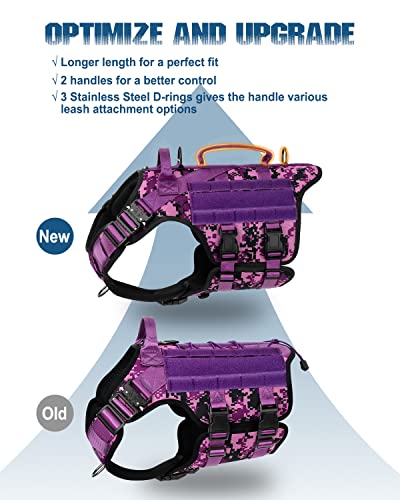 [Molle System & Multiple Handles]: This harness has a number of room for different Molle attachments on both sides, such as treat totes, poop bag pouches, service dog kits, military patches and name tags. The double handles are great so that you can help your dog in any position, it is much safer than pulling at a collar that may be around the neck