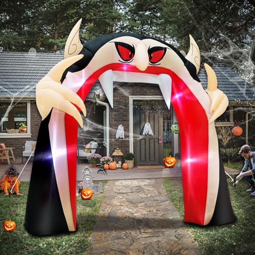 Bright Design: This Halloween vampire archway inflatable decoration comes with 5 built-in LED lights, attracting the attention of neighbors and guests at night. It stands out whether it is day or night
