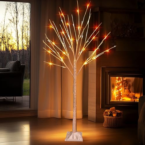 TW SHINE 2 Pack Lighted Birch Tree, 4 FT