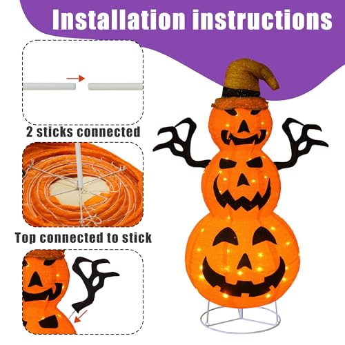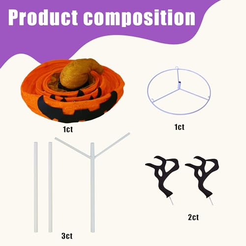 Easy Installation: No tools are required for setup. Simply connect the first pole to the base, attach the second one pole to the first, then connect the third pole to the second one. Safe the pumpkin man and in the end attach the hand poles to the second one pole. When not in use, the decoration may also be easily folded up and stored.