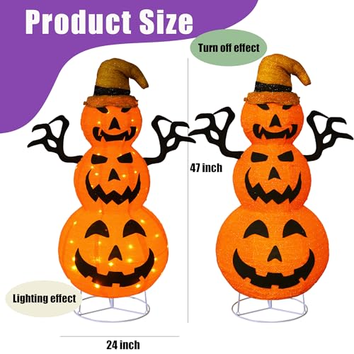 Package Includes: This package includes 1 x collapsible pumpkin man, 3 x poles, 2 x hand poles and 1 x metal chassis. The 4FT collapsible pumpkin is adorned with 100 LED lights and a spooky hand, making it perfect for adding a magical Halloween touch to both indoor and outdoor spaces.