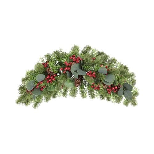 Durable Decorative Xmas Swag: With the latest pressing technology to prevent leaves and pine needles from falling off the swag. This door swag will sustain its original colors and lifelike appearance for years