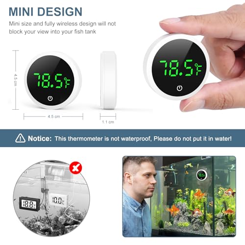 【Easy to Use 】Stick-on Thermometer adopt wireless design, steer clear of messy wires, convenient to use, providing a clean and protected environment for fish. Just tear off the adhesive and stick the fish tank thermometer below the water level on the out of doors of the tank, and the accurate back temperature sensor will helps you monitor your aquarium’s temperature. (Do not put the thermometer in the water. The thermometer is used on the out of doors of the fish tank)