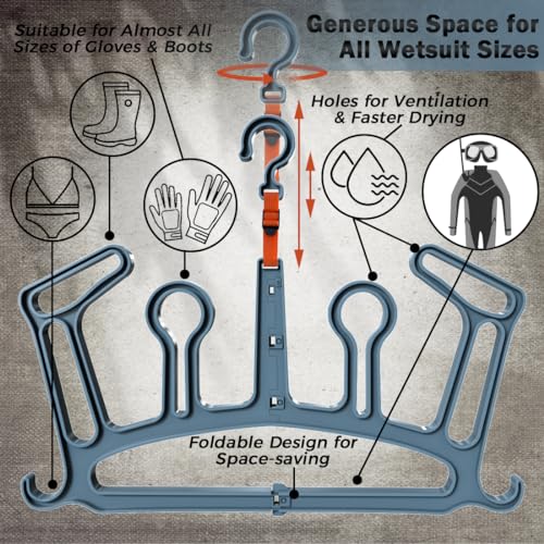 All of Your Wetsuit Kit Dried Together – The POUALAON wetsuit hanger comes with an adjustable strap, non-scratch, over-sized hook so you can hang it in a wide variety of places. You can hang your wetsuit, boots and gloves almost anywhere; on the back of the campervan, in a room away from damaging UV sunlight, from a shower screen or bathroom rail.