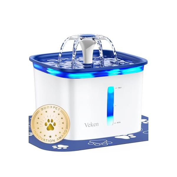 Two flow designs: The Veken Pet Fountain has 2 modes: flower waterfall (faucet drinking) and the gentle fountain. The water streaming down the petals of the flower on the fountain will draw your pets attention and encourage animals to drink more often.