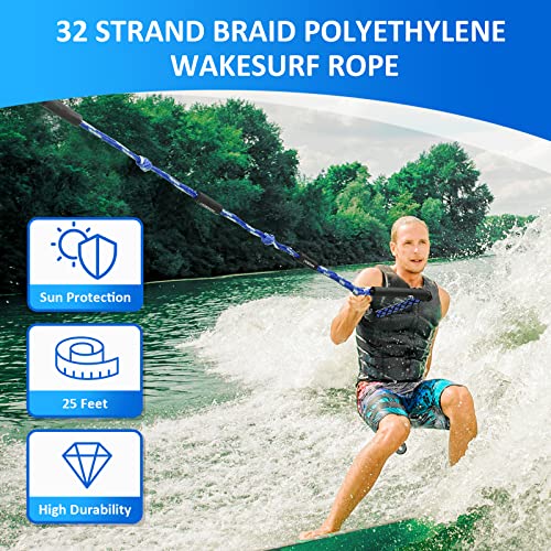 High Durability: 32 strand braid wakesurf rope, featured with sun protection, offers 2000lbs tensile strength even as pulling youself to get into the sweet spot of wake every time.
