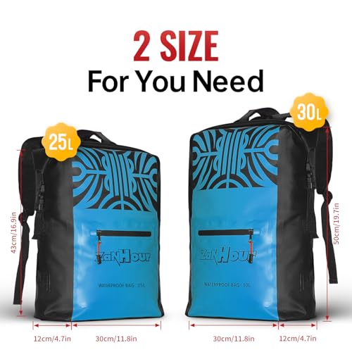 DIVERSE OPTIONS: Our waterproof bag comes in two convenient sizes – 25L and 30L – catering to diverse needs. Furthermore, we offer a vibrant palette of as much as 6 colors to choose between, allowing you to personalize your pick and make your commentary.