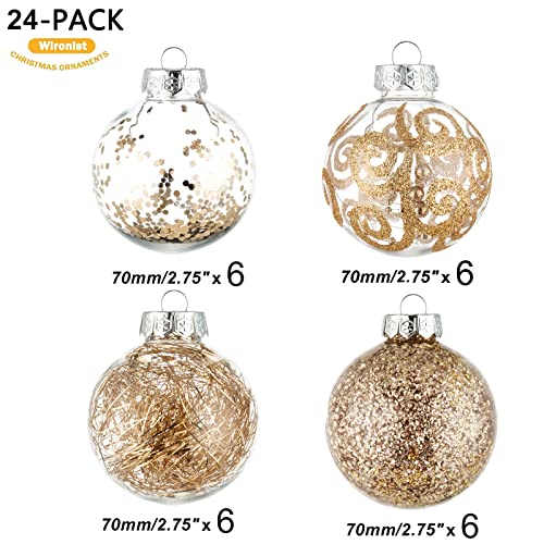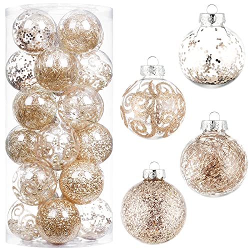 UNIQUE DESIGN — These christmas ornaments are made of durable and eco-friendly plastic. These plastic ornament balls make your decoration more attractive. Set of 24 Christmas ball ornaments are made of top of the range plastic christmas balls are done in 4 special designs and Dimensions: 2.76″ (70mm) in diameter. Fit for most Christmas trees.