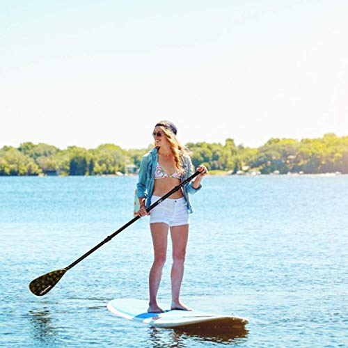 EASILY ADJUSTABLE FOR ALL PADDLERS:Our 3-piece paddle only takes seconds to set your own length preference and it stays locked in place until you change it. It is adjustable from 68.9 to 87.4 inches (1.75m-2.22m), making it ideal for paddlers above the height of 5 feet. It takes under 20 seconds to setup and take apart your paddle