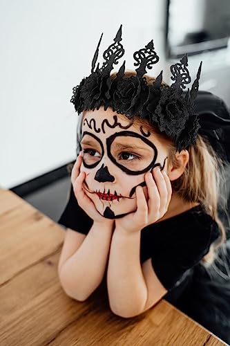 DESIGN: Handmade black queen crown with 5 thorn roses, looks elegant and charming, making you the life of any party. The goth hair accessories are great to create an extremely spooky and festival atmosphere in your Halloween party.