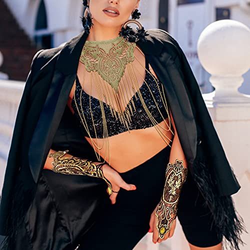 [Design]:Gold Body Chain,Body Chain Necklace,Layered Body Chains,Fingerless Gloves