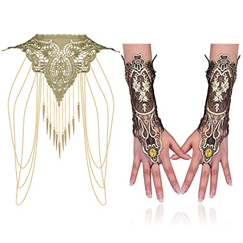 [Qty]:1 Gold Body Chain Necklace + 1pair Of Fingerless Gloves