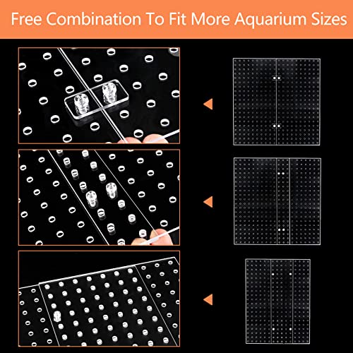 Smaller Gaps on Either Sides Due to Small Screwable & Water Circulation Holes all over the Divider:The divider holes are very small which are only 4.2mm diamter, it allows water circulation,straws fixing and stop most of fishes from swimming through.Holes all around the divider pieces and make the widths and height of the assembling divider finely adjustable to achieve small gap between the tank sides.