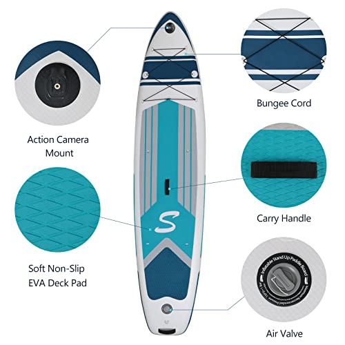 【Effortless Inflation】Our double actions pump inflates the SUP to pressures of as much as 15 PSI in just 10 minutes, making it more efficient than abnormal pumps.
