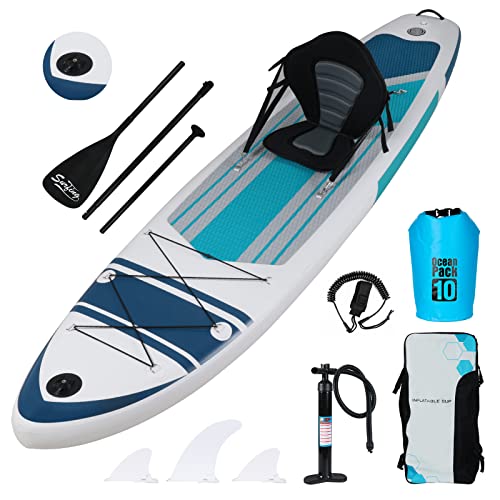 【SUP & KAYAK Combo】Our inflatable paddle board comes with a board, adjustable paddle, shuttle backpack, adjustable kayak seat, coil leash, coiled ankle cuff safety leash, and repair kit. Enjoy an unforgettable beach vacation together with your circle of relatives on an inflatable KAYAK&SUP!