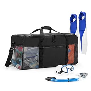 MADE WELL: The extra large duffel bag is made of heavy duty nylon materials and sturdy mesh for times of using. Breathable mesh design allows for draining water and helps your scuba gear to air dry quickly.