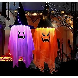 【PREMIUM QUALITY & REUSABLE】Witch hat made of high-quality black oxford cloth and the bottom made of orange and white environmentally friendly super-polyester silk. the witch ghost halloween hanging decoration easy to store and store environmentally friendly and durable foldable design and repeatability allow you to save cost and space.