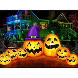 Unique design 12 Ft Long Halloween Inflatables decoration with 7 cheerful pumpkin faces, and 2 witch hats, creates a fun Halloween scene in your outdoor garden. Measures 12 x 2.4 x 3.6Ft (length x width x height). Copyright Certificated Model