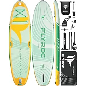 【WEIGHT CAPACITY UP TO 450LB, MEET ALL NEED】 FLYROC SE paddle board for adults can carry up to 450LB load, making it an ideal choice for larger/muscular people, multi riders or those who wants to carry additional gears. FLYROC sup can accommodate 2 adults of large size or families with children or pets while maintaining an utmost performance on the water.$249.9911’6×35” Extra Wide Inflatable
