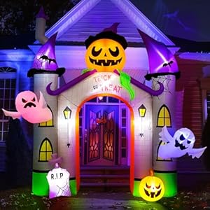 🎃【Outdoor Inflatable Haunted Castle】: Perfect for decorations your yard into a haunted house, this inflatable castle archway is ideal for outdoor decorations, making your Halloween setup spectacular.$75.99 -