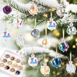 15Pcs Christmas Balls Ornaments: It come with 15*different colors cute crystal glass hanging balls. Different color patterns prism with spherical section reflection under the sunshine and light. Clear and Sparkly, great for your christmas tree decorations.