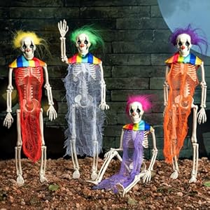You will get: 4 Full-Bodied Skeletons Covering the Total Skeletal Structure. Measuring 16″ inches in length, each Clown Skeleton is Dressed in the Freakiest Carnival Fashion.
