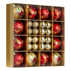 🎄【2024 Christmas Tree Balls Ornament】This Christmas ornament set consists of 44 Christmas balls, mainly composed of two colors of gold and red,12 large balls (2.36 inches), 32 small balls (1.18 inches).