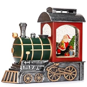 Santa Red Train Christmas Snow Globe Lantern-Glittering