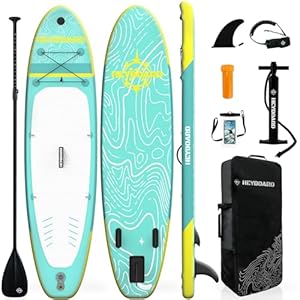 ENHANCED STABILITY & MANEUVERABILITY – HEYBOARD paddleboards are equipped with 3 bottom fins for precise and fast steering. Extremely large scale and deep cut EVA deck performs excellent anti-slip and water drainage. With a wide stance area and an optimized board thickness, stability is at the forefront, ensuring users stay upright and comfortable.