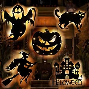 【Multifunctional and East-to-Install】: Ghost lights halloween can be quickly put into place without specialized skills for Halloween decorative lights. With a variety of lighting effects switching, including long bright slow flashing fast flashing and so on, just a simple operation, you can adjust the light mode according to the holiday atmosphere or personal preferences, add more creativity and change for Halloween decorations.$13.99$14.99Halloween Window Lights with Hooks Halloween