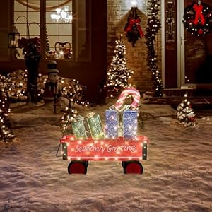 【Safe and 70 Bright Lights】Featuring 70 plug-in lights, this wagon glows with a warm and magic light that adds a bright touch to your holiday setup. The lights are designed to be safe, reliable, and energy-efficient, ensuring your outdoor Christmas decorations shine brightly throughout the season. These lights provide stable illumination, creating a cozy and charming atmosphere, allowing you to enjoy the festive beauty with peace of mind, accompanying you through a joyful holiday season.$99.99 -