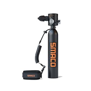 🏊【10MINS UNDERWATER BREATHING】:SMACO mini diving tank has a capacity of 0.5L and can breathe underwater for up to 10 minutes. At the same time, the scuba tank has three-layer filtration device, which effectively prevents the entry of dust and impurities, making the inhaled gas cleaner. (Attention: Diving depth, temperature, and breathing rate will affect the use time of the scuba tank.)